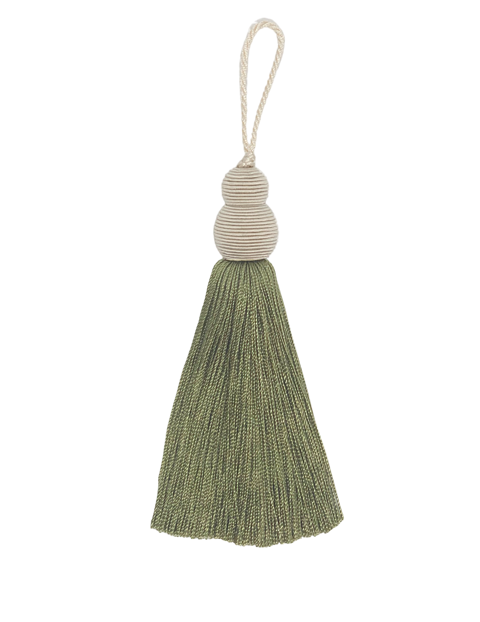 We love how a simple tassel can always add a finishing touch. Whether adorning a Christmas tree, the switch of a lamp, a dresser knob, or a spare key for guests — these tassels add playful elegance to any décor. Choose from 10 color options and sold in sets of 6. Features a silk-like tassel bottom with two baubles attached. Tassel is 5" long (not including the loop.)