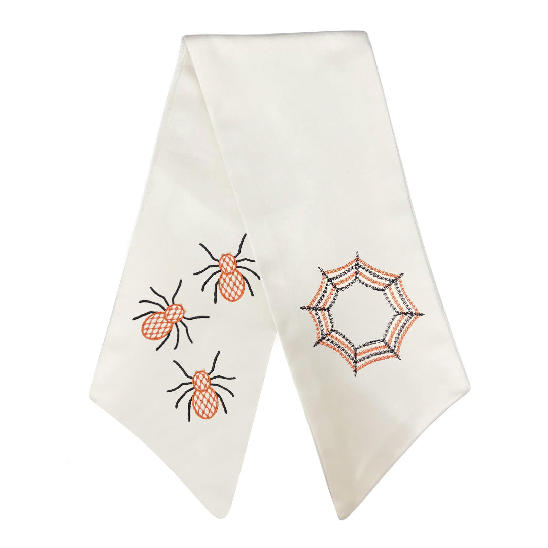 Happy Halloween! Put a spell on the entire neighborhood with our Spooky Sashes featuring embroidered ghost and spider designs on our signature ivory wreath sash.