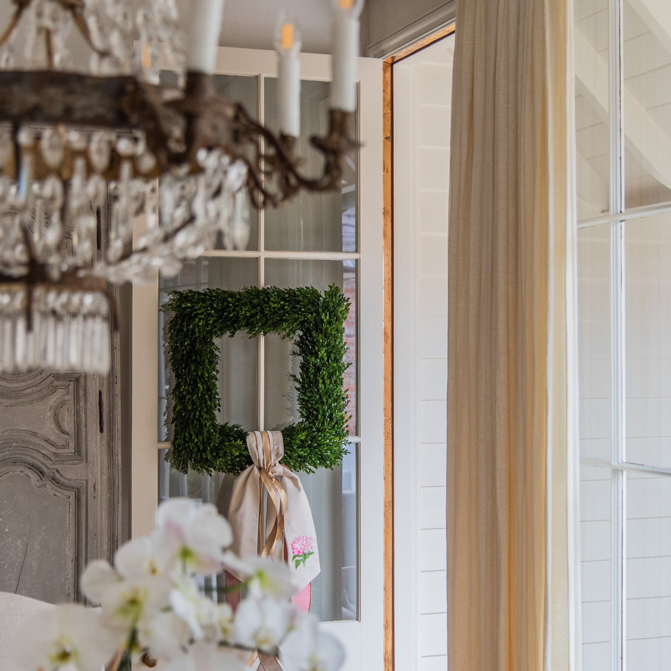 We've perfectly proportioned our exclusive collection of wreath sashes to this wreath - adorn your wreath with these unique sashes for a classic entrance!