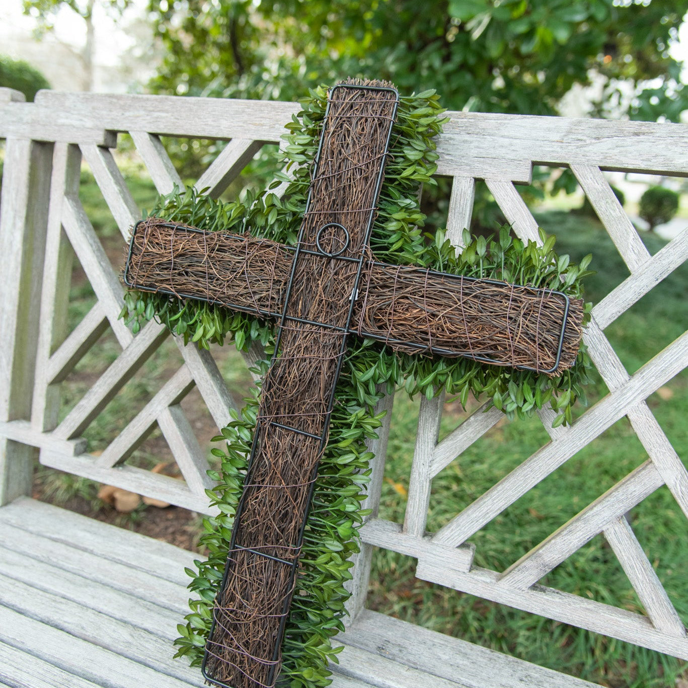 Made from the same faux material as our fabulous round and square faux boxwood wreaths, our newest wreath offering is made for special occasions. Display on church doors at a wedding, use during the Easter season, or decorate with fresh flowers to mark baptisms or first communions.