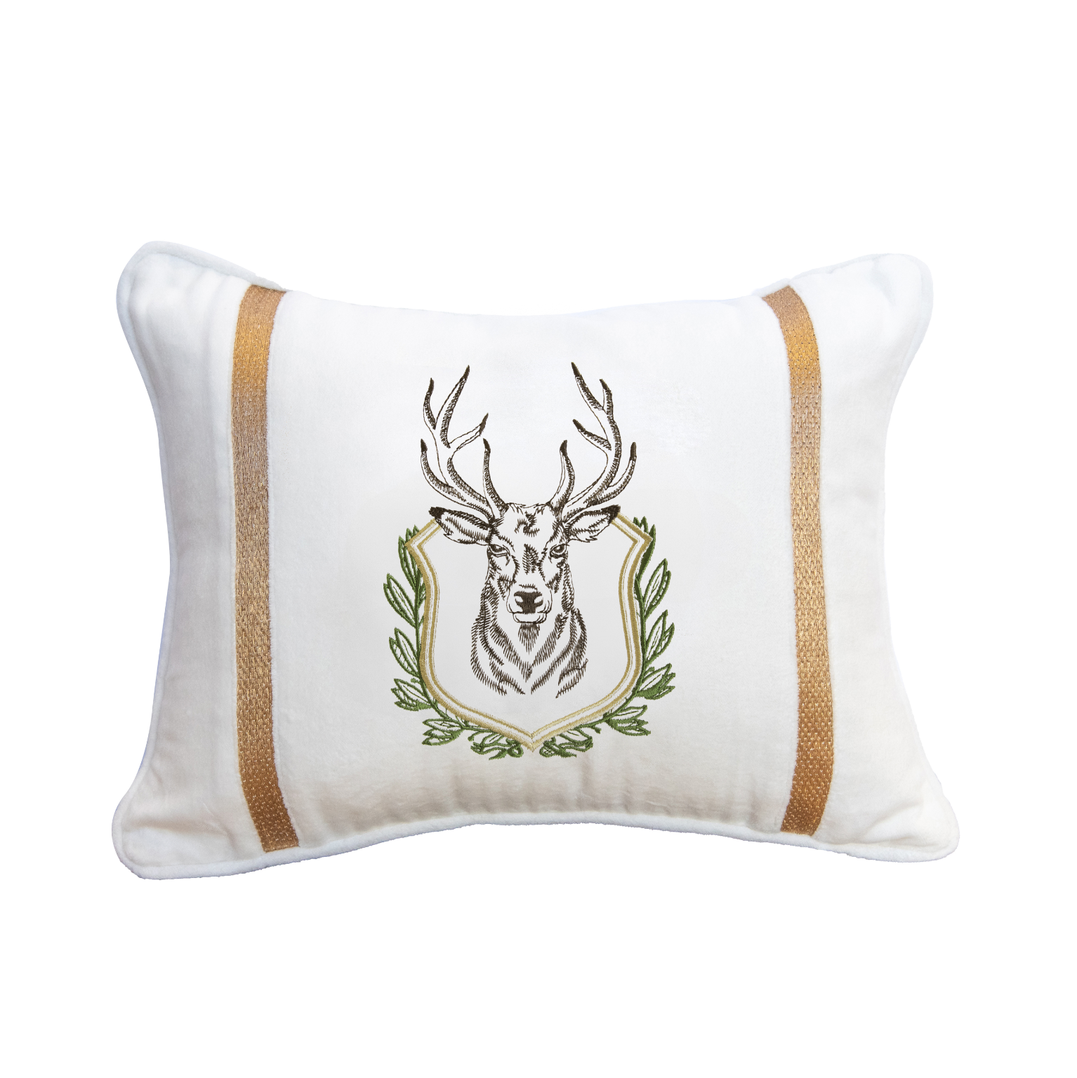 Elevate your holiday decor with our luxurious White Velvet Throw Pillow, featuring an elegant stag embroidered in rich, colored thread. The plush velvet adds a touch of softness and sophistication, while the timeless stag design brings festive charm to any space—perfect for cozying up your living room or accenting a seasonal display. Comes with an insert.
