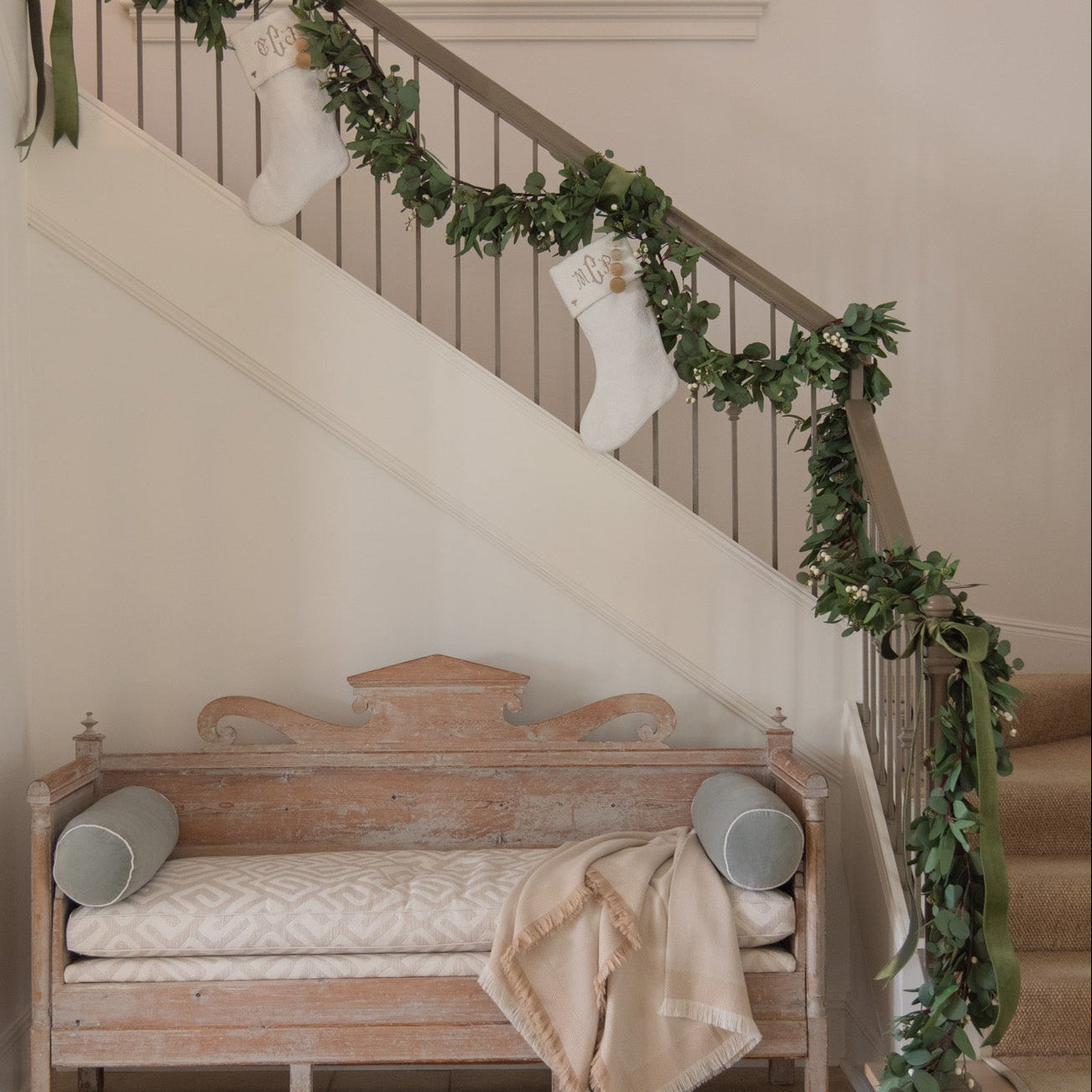 Crafted to accent holiday décor with soft texture, our boucle stockings will bring a warm, cozy aesthetic to your home. Whether you monogram them or leave them plain, these new stockings are sure to blend effortlessly in any home's décor. For a finished look, don't forget the coordinating tree skirt! To add a touch of elegance, personalize your Christmas stockings with a one, two or classic three-letter monogram.